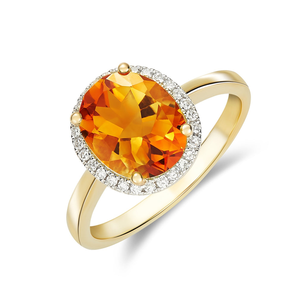 9CT Yellow Gold Oval Citrine & Diamond Ring 12x10mm