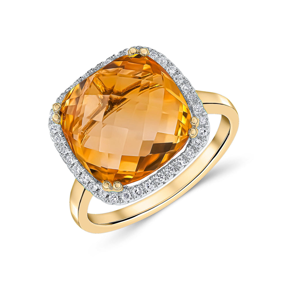 9CT Yellow Gold Cushion Citrine & Diamond Cluster Ring 12mm