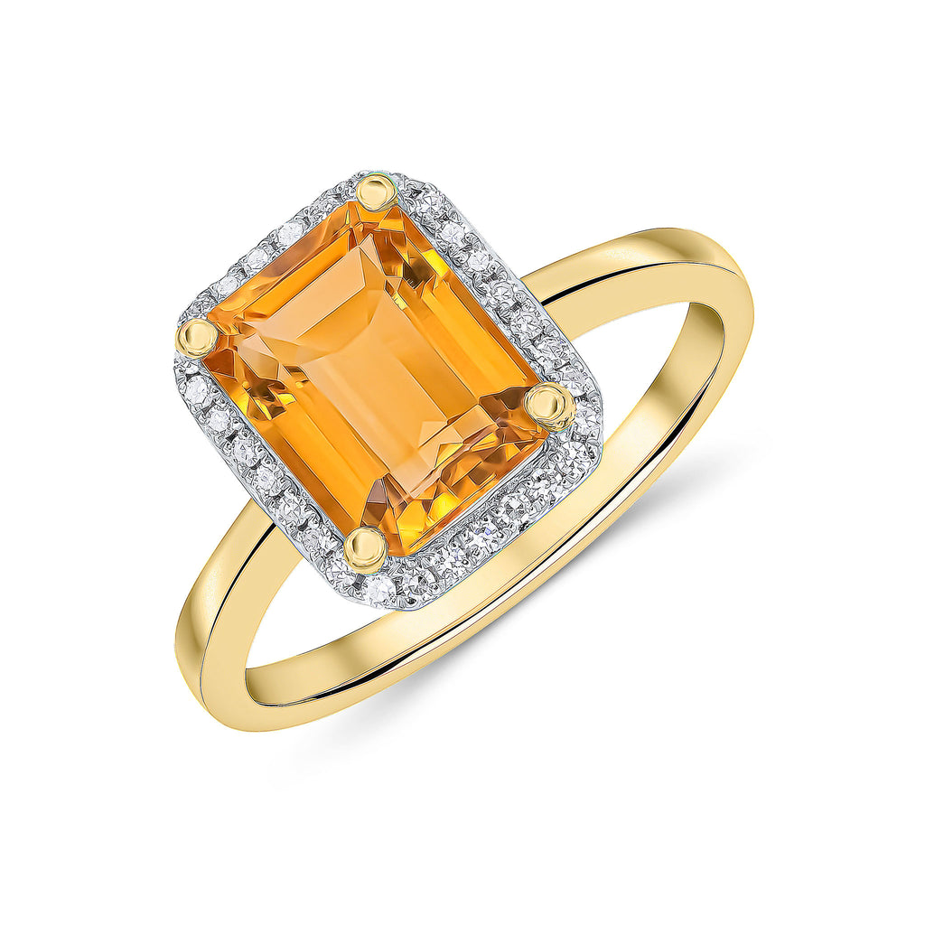 9CT Yellow Gold Octagonal Citrine & Diamond Ring 14x10mm