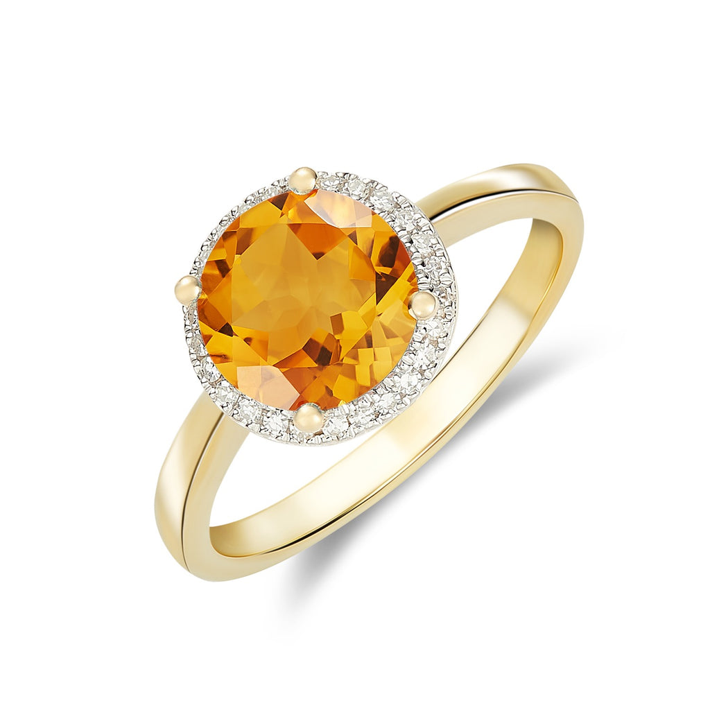 9CT Yellow Gold Round Citrine & Diamond Cluster Ring 8mm