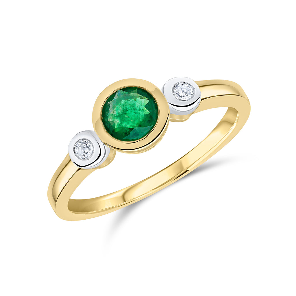9CT Yellow Gold Round Emerald & Diamond Three Stone Ring 5mm