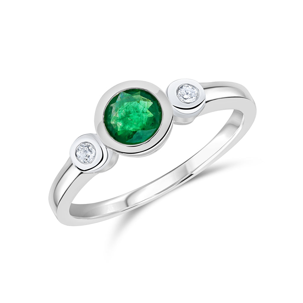 9CT White Gold Round Emerald & Diamond Three Stone Ring 5mm