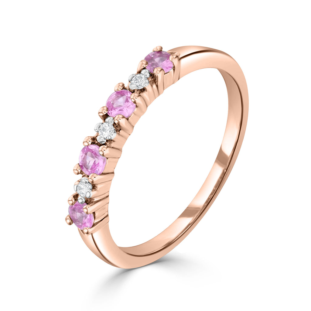 9CT Rose Gold Round Pink Sapphire & Diamond 7 Stone 1/2 Eternity Ring
