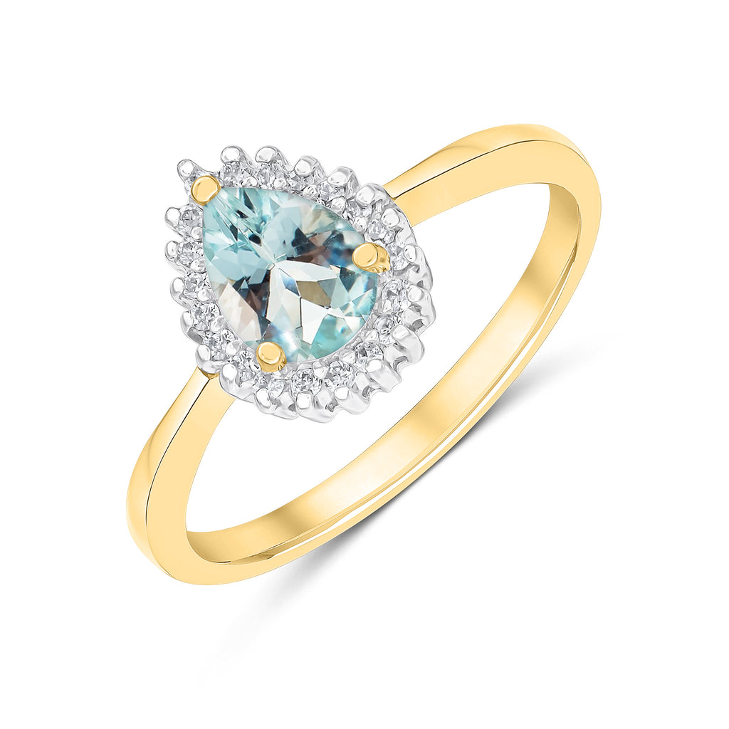 9CT Yellow Gold Pear Shaped Aquamarine & Diamond Cluster Ring 7x5mm