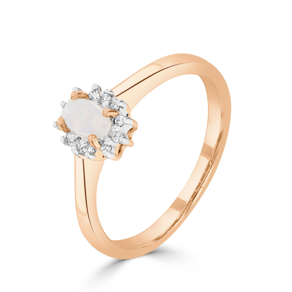 9CT Rose Gold Oval Opal & Diamond Cluster Ring 5x3mm