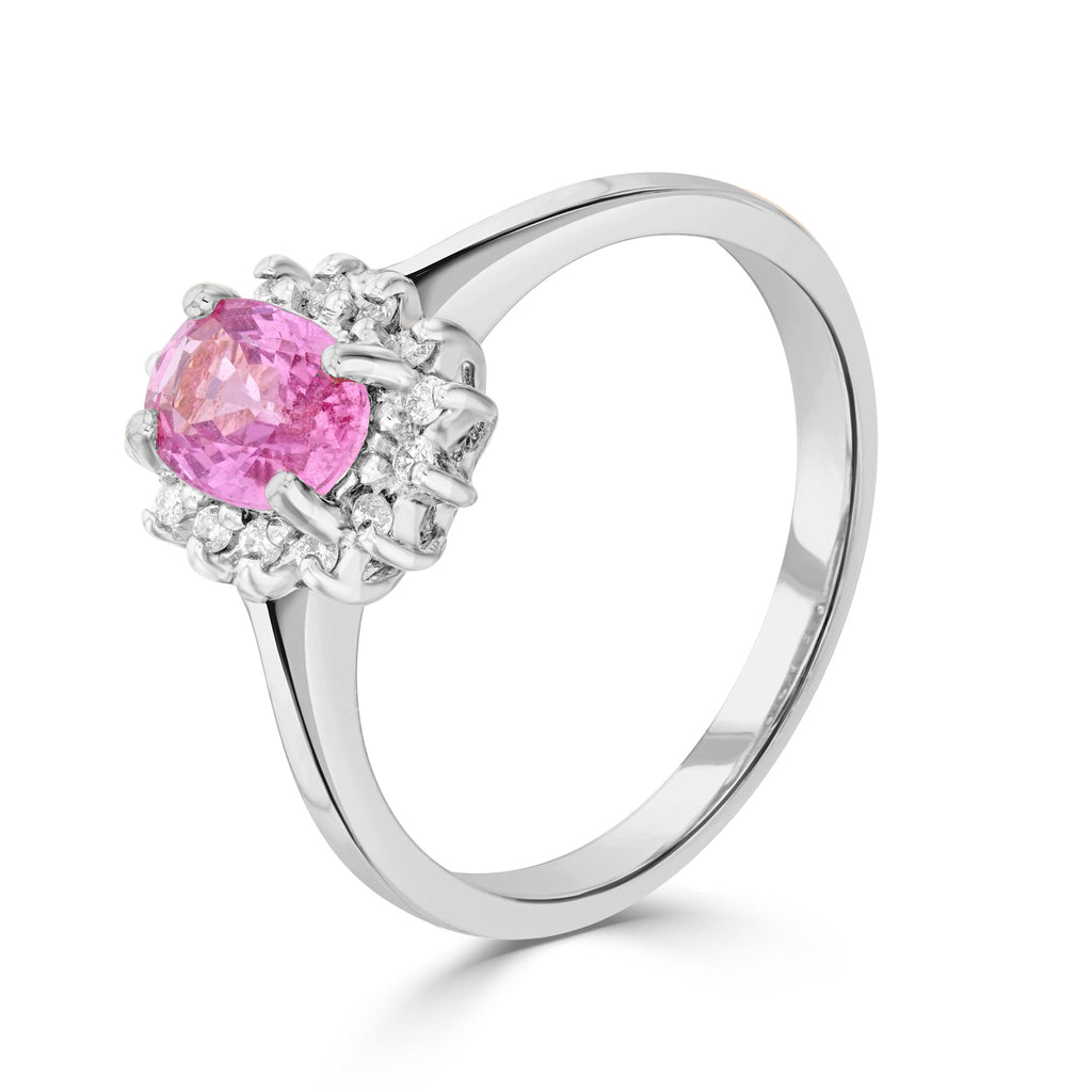 9CT White Gold Oval Pink Sapphire & Diamond Cluster Ring 7x5mm