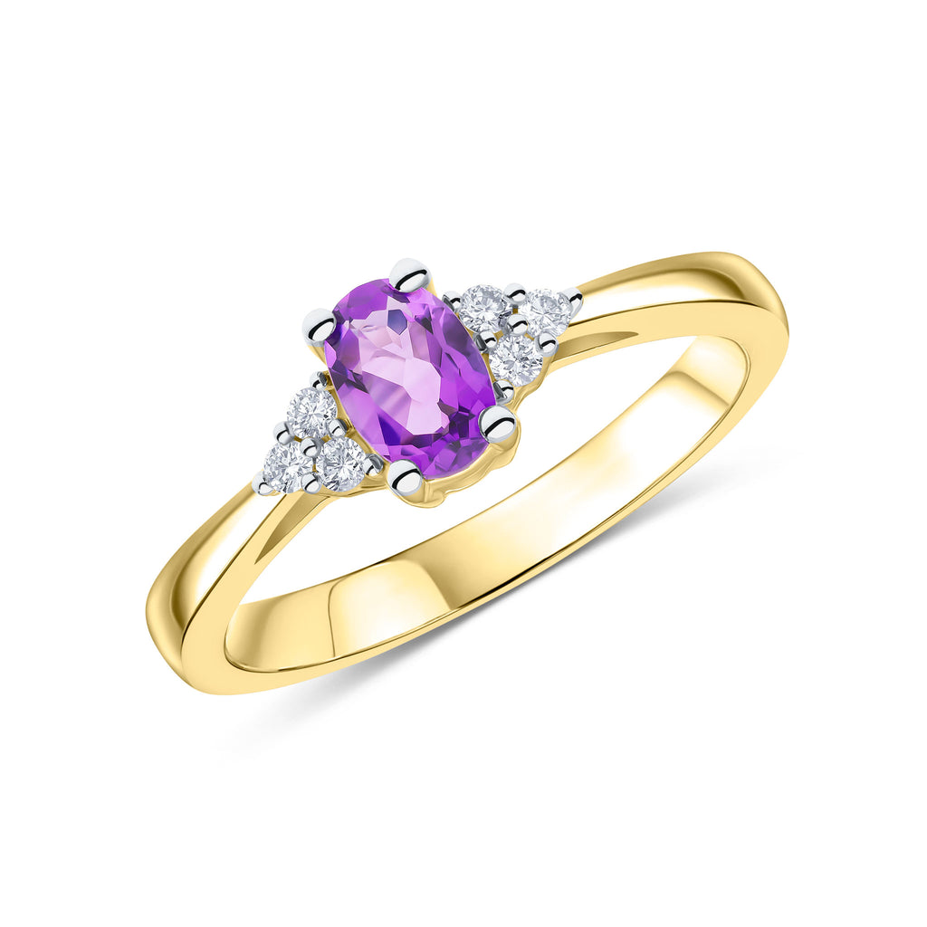 9CT Yellow Gold Oval Amethyst & Diamond Trefoil Ring 6x4mm