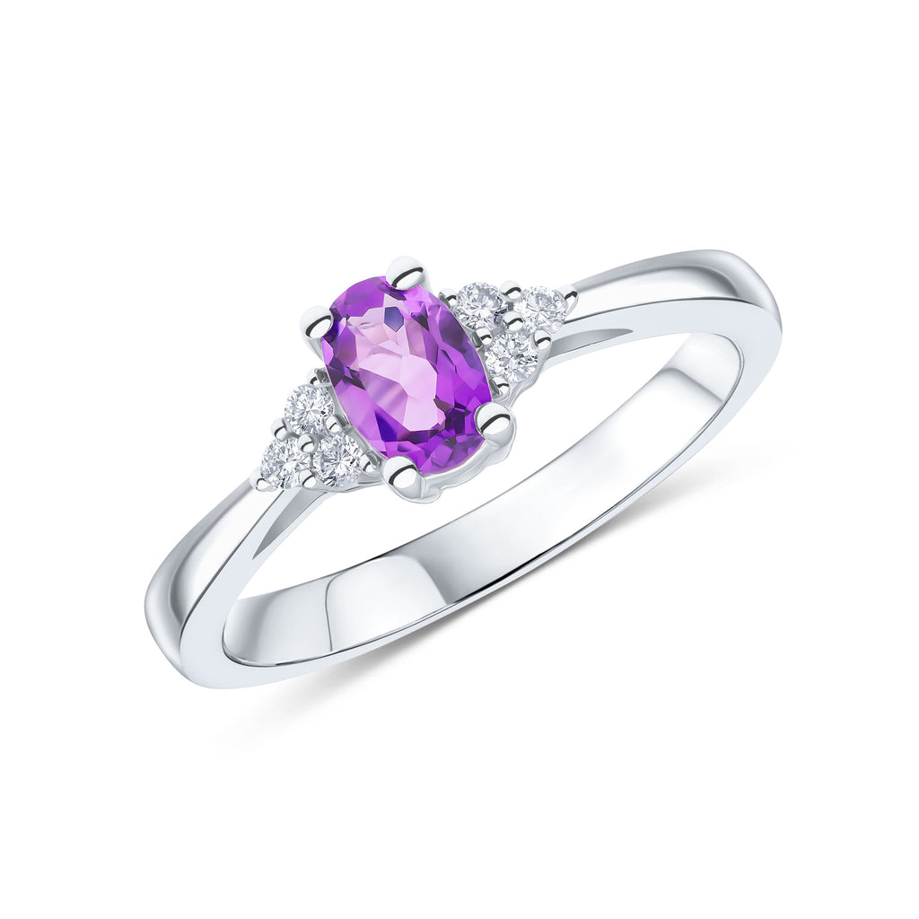 9CT White Gold Oval Amethyst & Diamond Trefoil Ring 6x4mm
