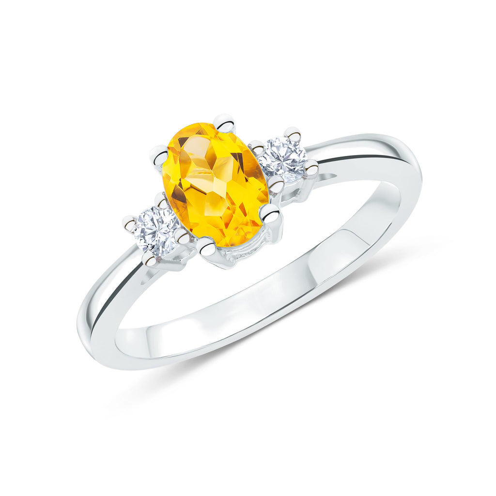 9CT White Gold Oval Citrine & Round Diamond 7x5mm Claw Set Three Stone Ring
