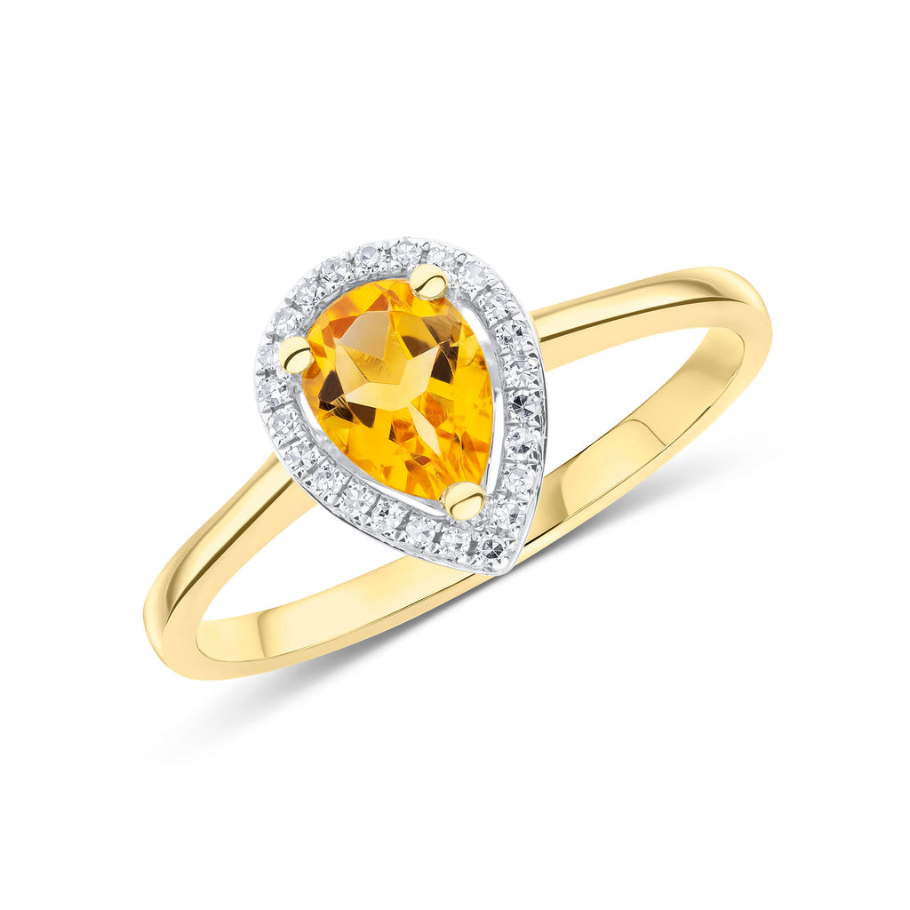 9CT Yellow Gold Pear Shaped Citrine & Diamond Halo Cluster Ring 7x5mm