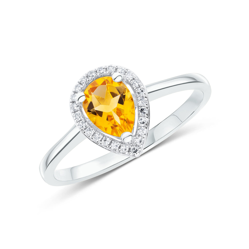 9CT White Gold Pear Shaped Citrine & Diamond Halo Cluster Ring 7x5mm