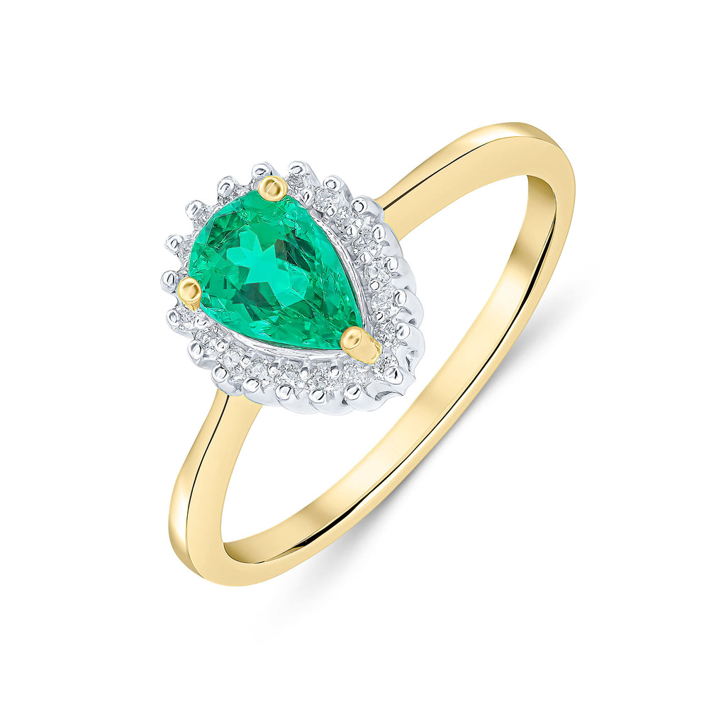 9CT Yellow Gold Pear Shaped Emerald & Diamond Cluster Ring 7x5mm