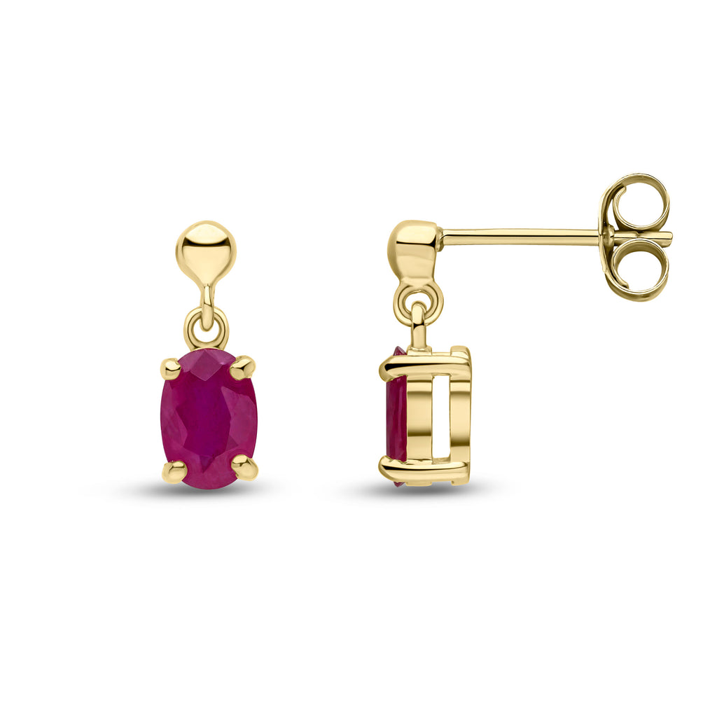 9CT Yellow Gold Oval Ruby Claw Drop Earrings with Bead Top 6x4mm