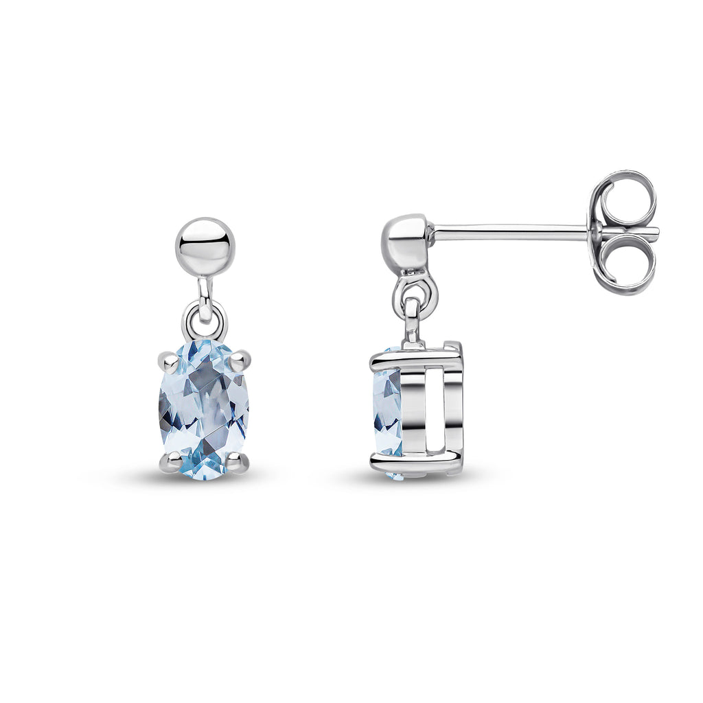 9CT White Gold Oval Aquamarine Drop Earrings 6x4mm