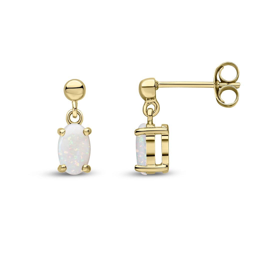 9CT Yellow Gold Oval Opal Drop Earrings 6x4mm