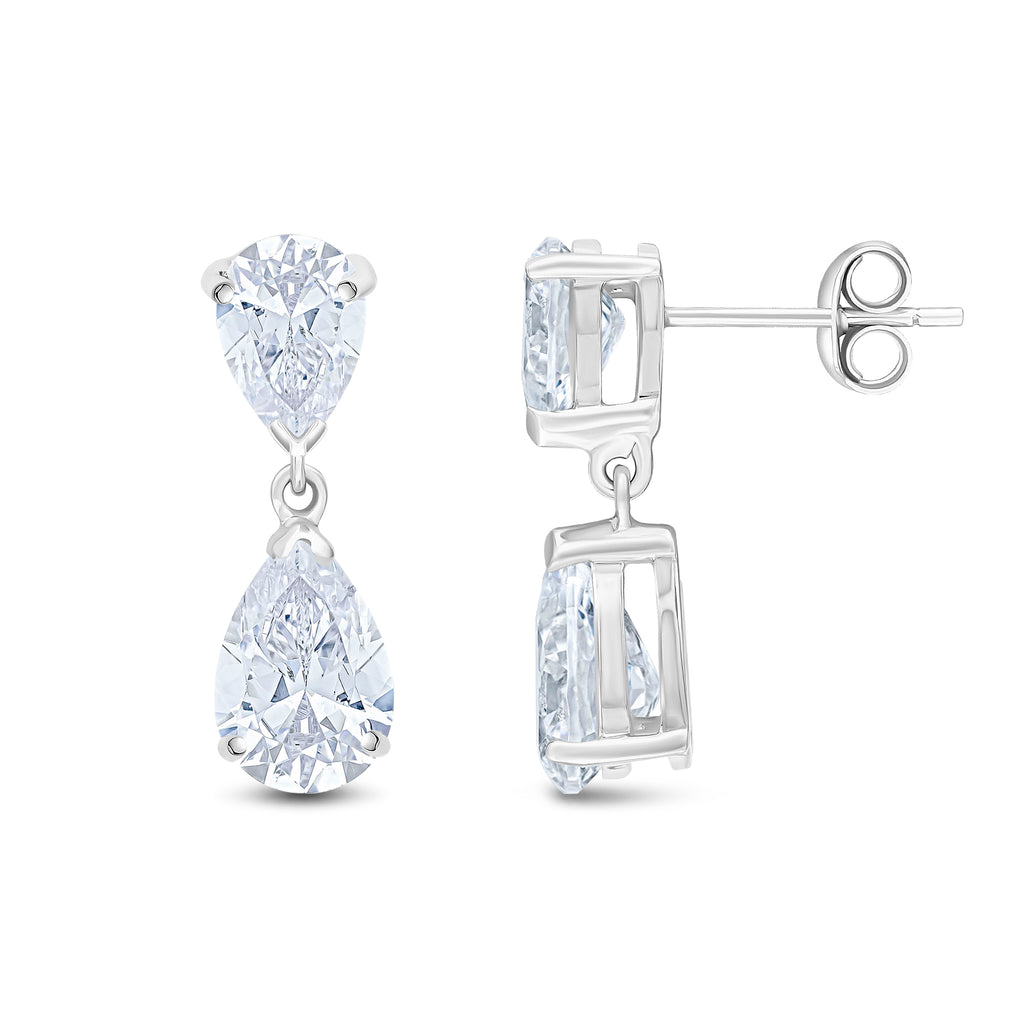 9CT White Gold Pear Shaped Cubic Zirconia CZ Two Stone Drop Earrings