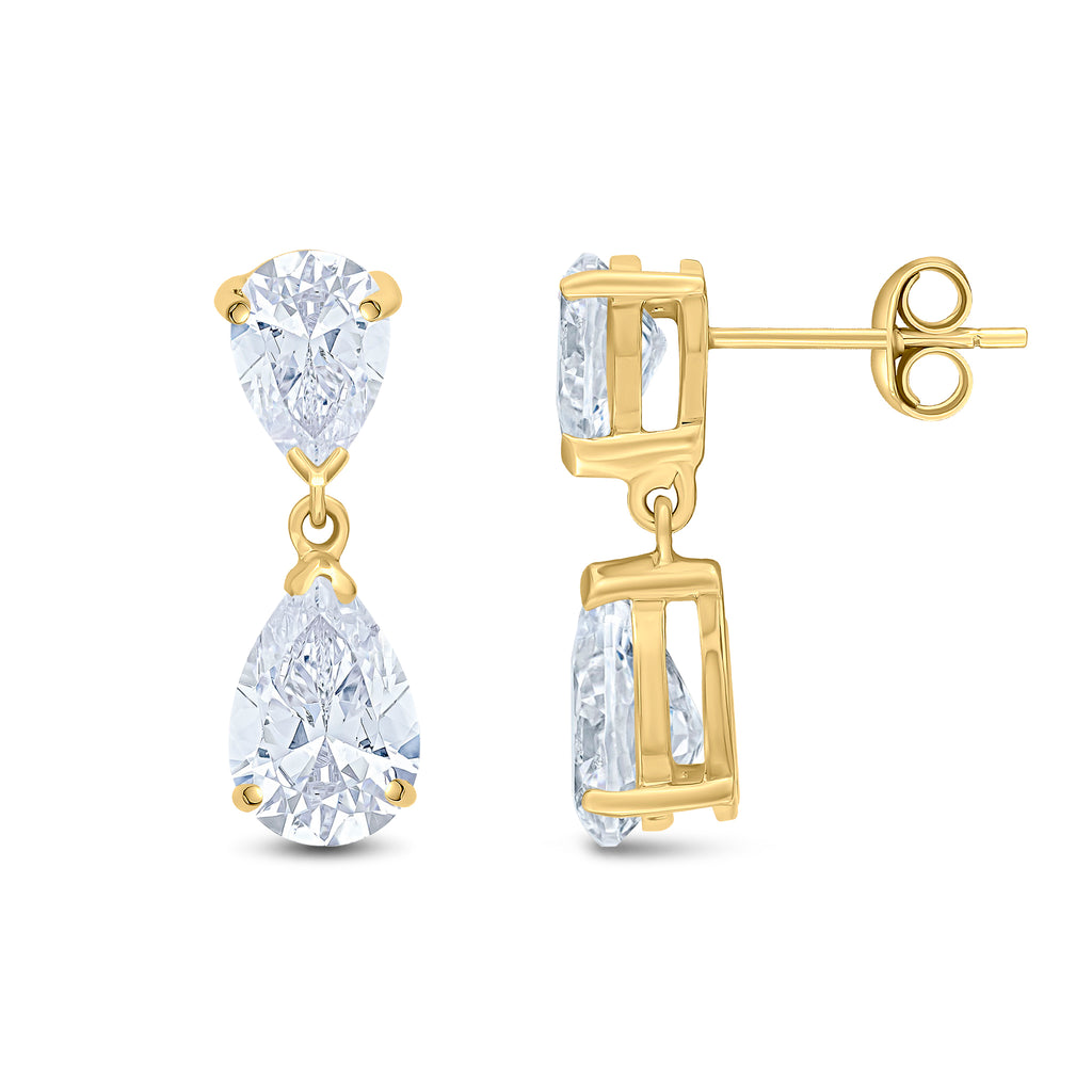 9CT Yellow Gold Pear Shaped Cubic Zirconia CZ Two Stone Drop Earrings