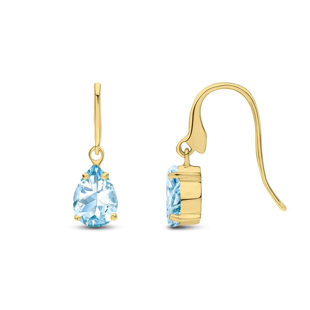 9CT Yellow Gold Pear Shaped Swiss Blue Topaz Claw Drop Earrings 7x5mm