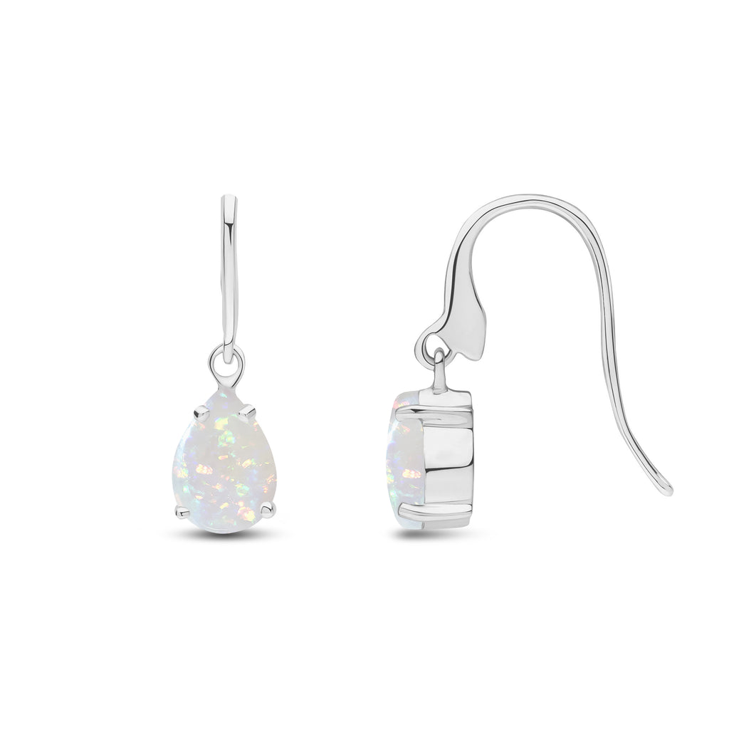 9CT White Gold Pear Shaped Opal Claw Drop Earrings 7x5mm