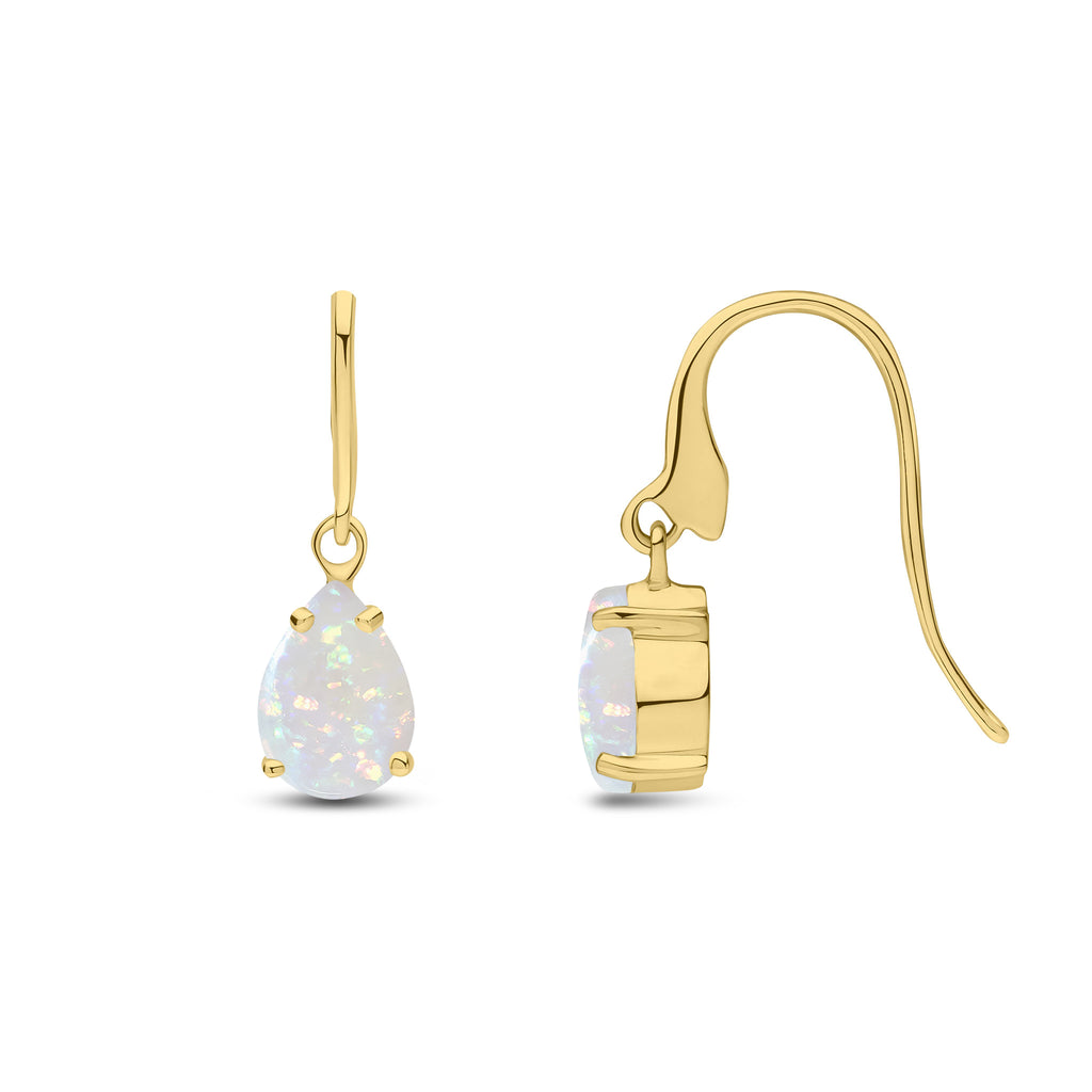 9CT Yellow Gold Pear Shaped Opal Claw Drop Earrings 7x5mm