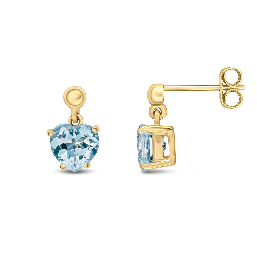9CT Yellow Gold Heart Aquamarine Claw Drop Earrings 6mm