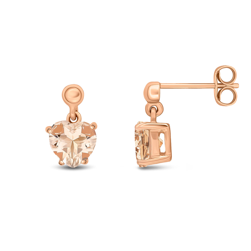 9CT Rose Gold Heart Morganite Claw Drop Earrings 6mm