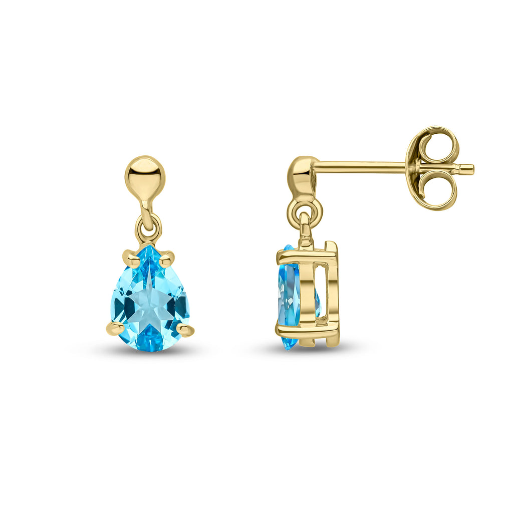 9CT Yellow Gold Pear Shaped Swiss Blue Topaz Drop Earrings 7x5mm