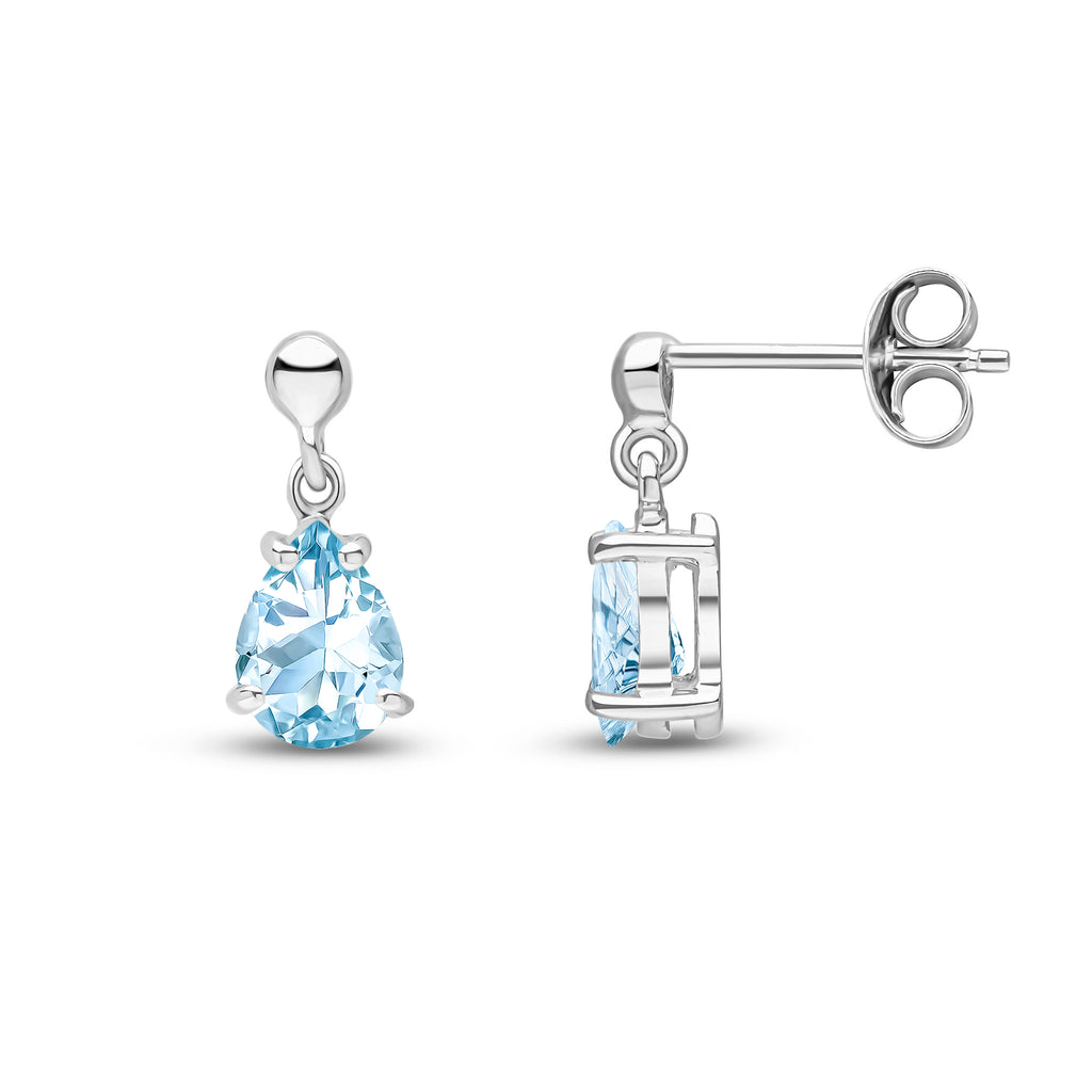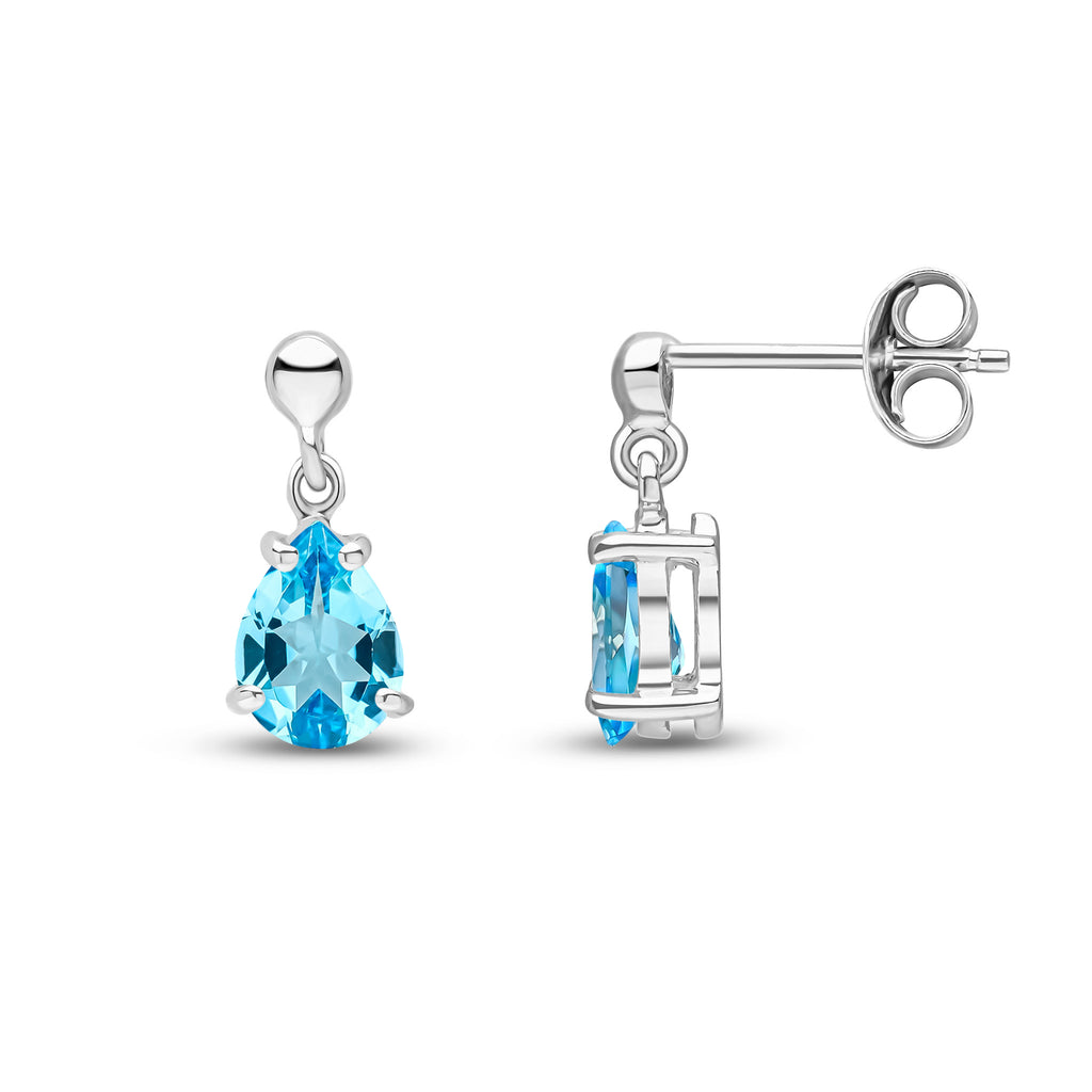 9CT White Gold Pear Shaped Swiss Blue Topaz Drop Earrings 7x5mm