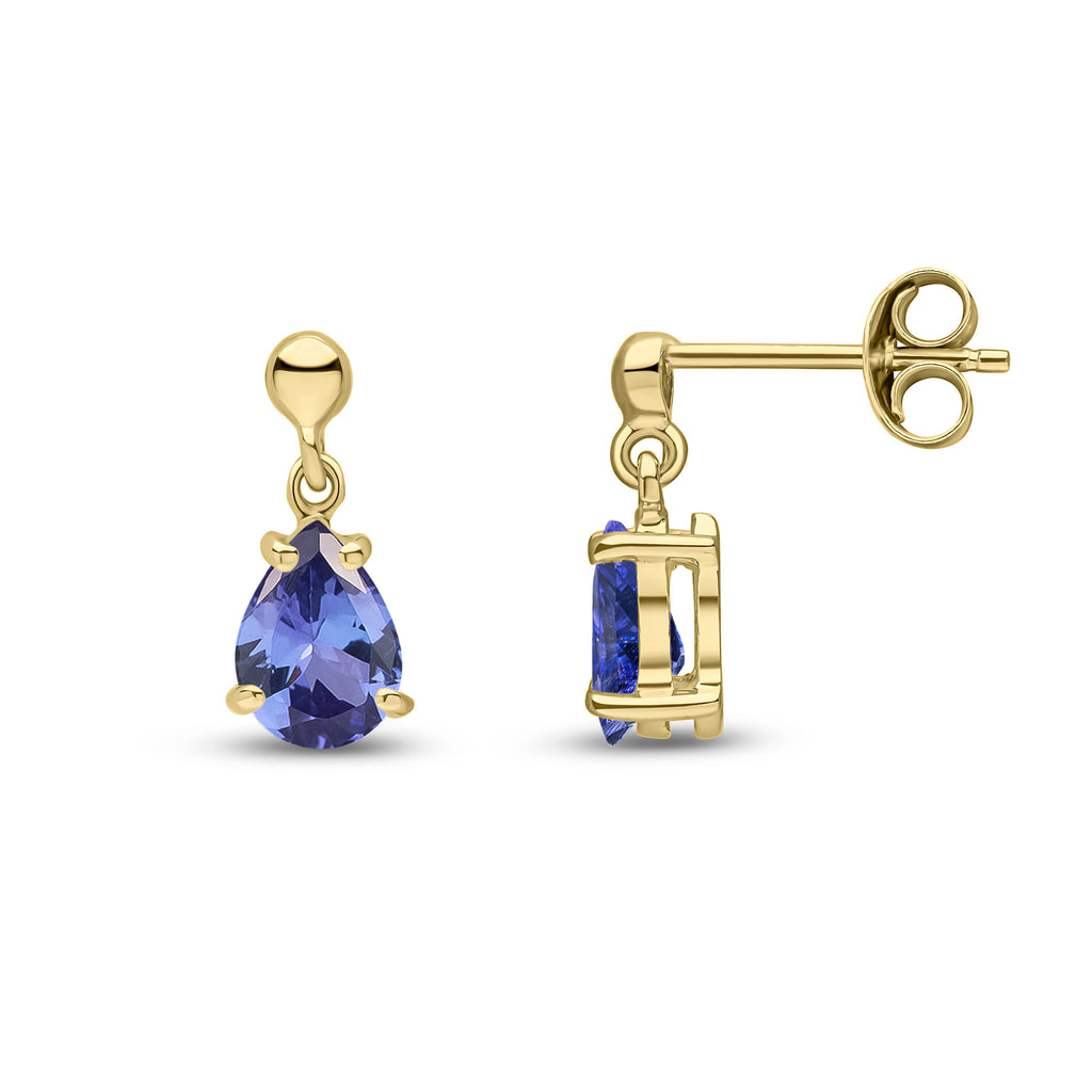 9CT Yellow Gold Pear Shaped Tanzanite Drop Earrings 7x5mm