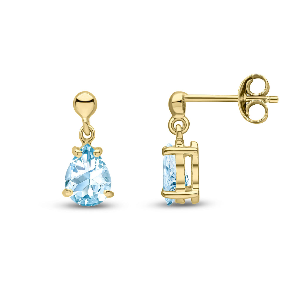 9CT Yellow Gold Pear Shaped Aquamarine Drop Earrings 7x5mm