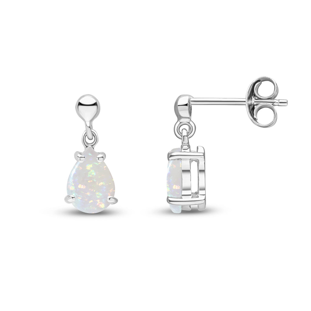 9CT White Gold Pear Shaped Opal Drop Earrings 7x5mm