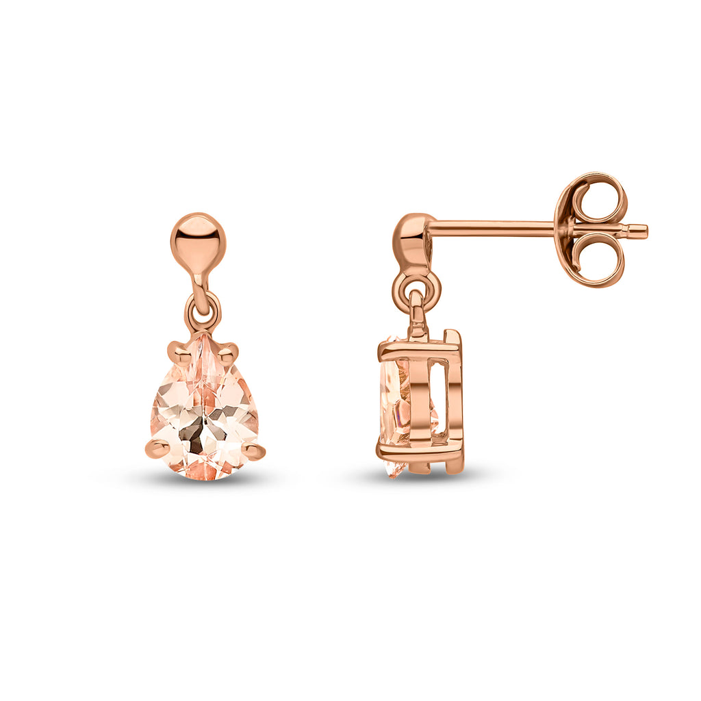 9CT Rose Gold Pear Shaped Morganite Drop Earrings 7x5mm