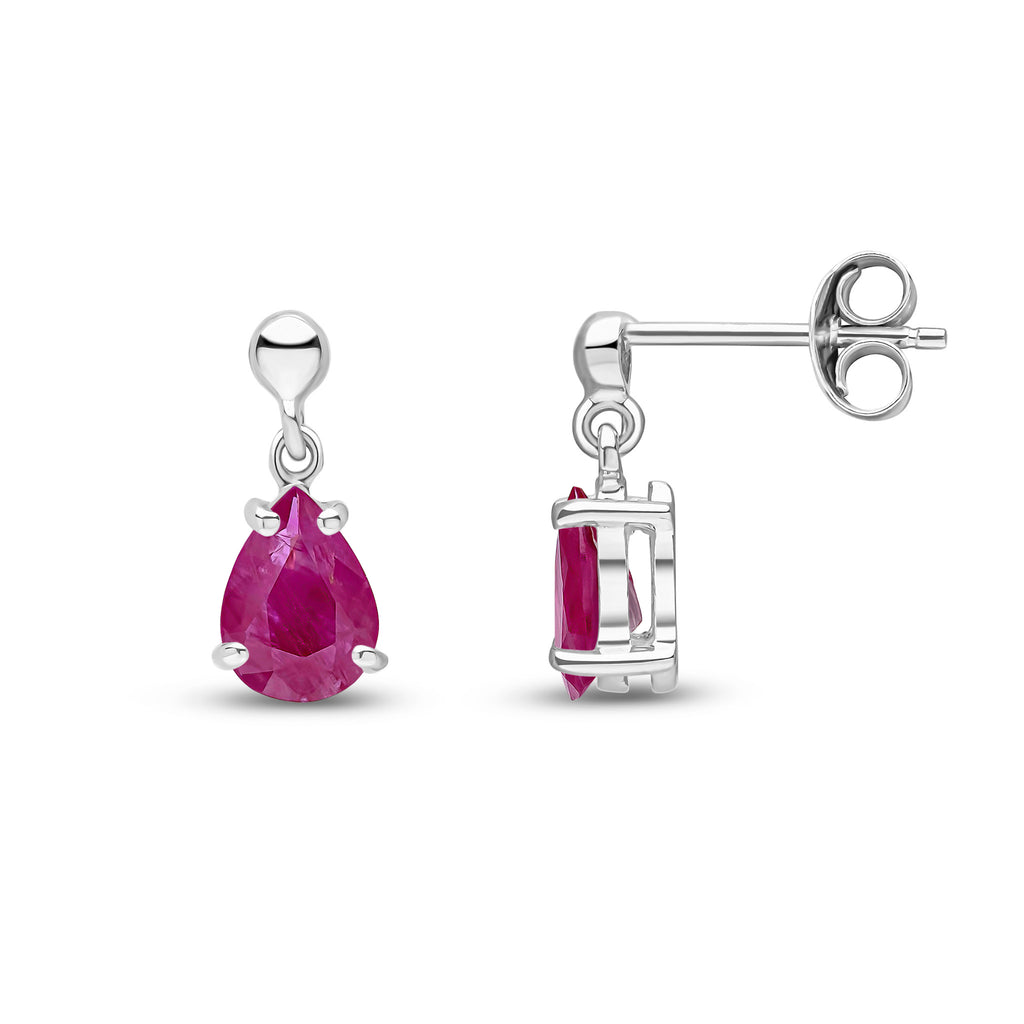 9CT White Gold Pear Shaped Ruby Drop Earrings 7x5mm