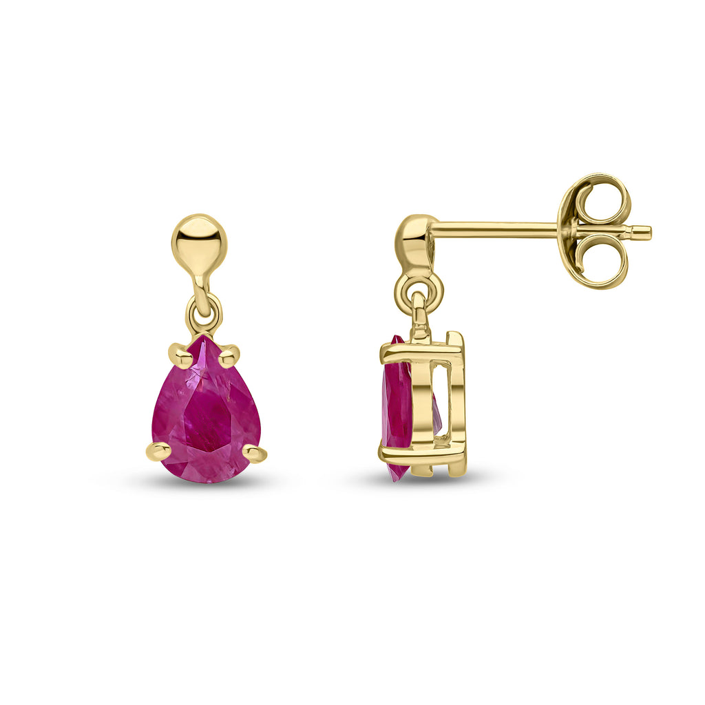 9CT Yellow Gold Pear Shaped Ruby Drop Earrings 7x5mm