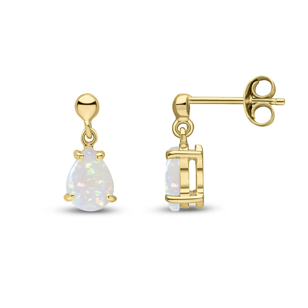 9CT Yellow Gold Pear Shaped Opal Drop Earrings 7x5mm
