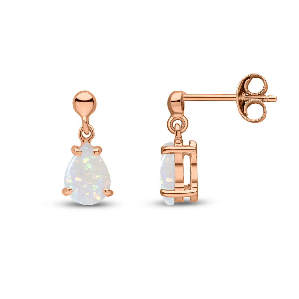 9CT Rose Gold Pear Shaped Opal Drop Earrings 7x5mm