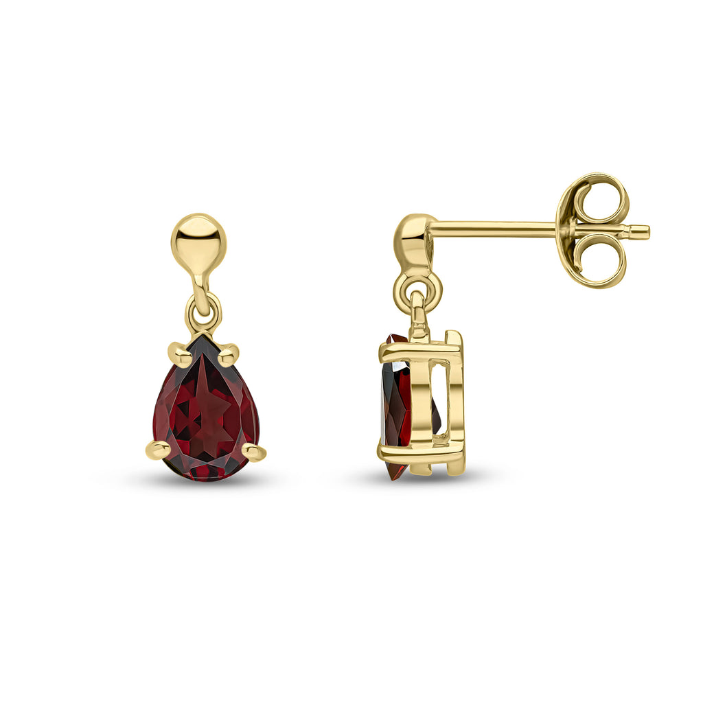9CT Yellow Gold Pear Shaped Garnet Drop Earrings 7x5mm