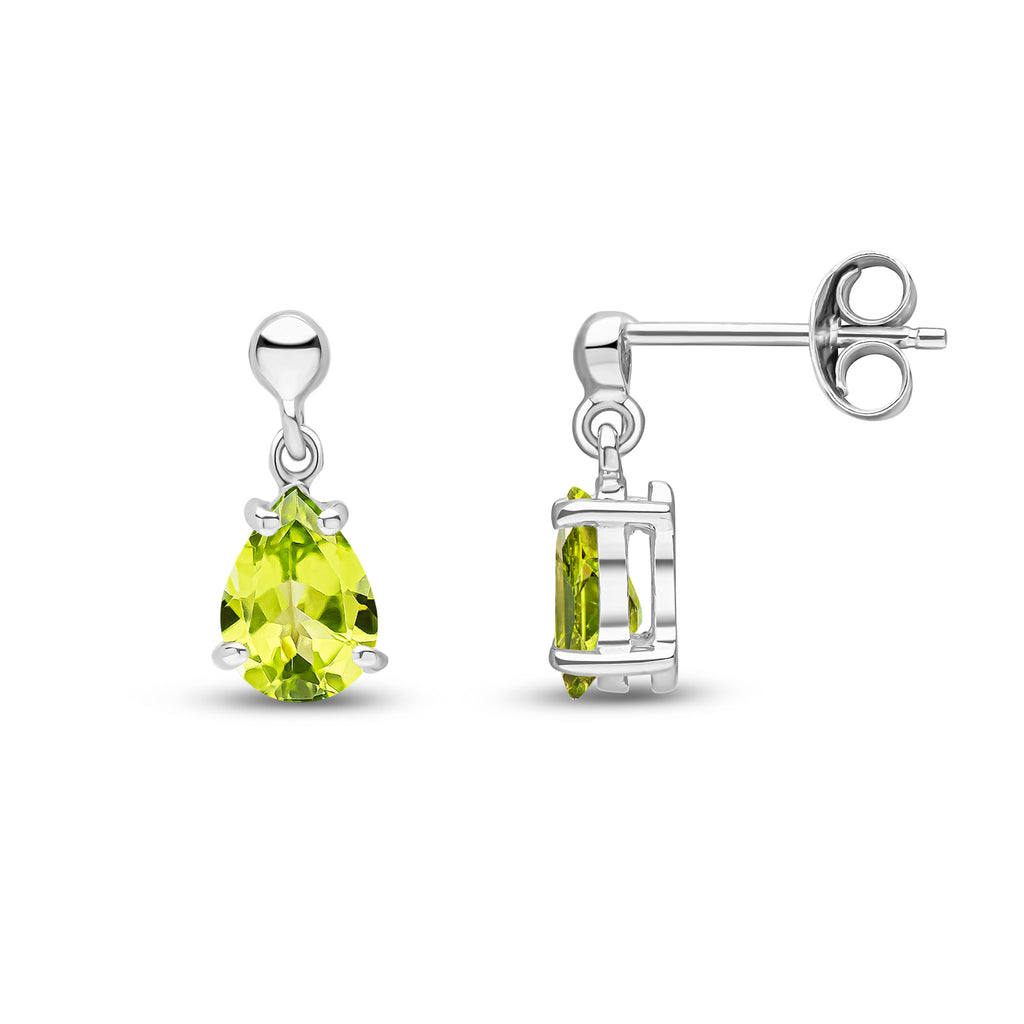 9CT White Gold Pear Shaped Peridot Drop Earrings 7x5mm