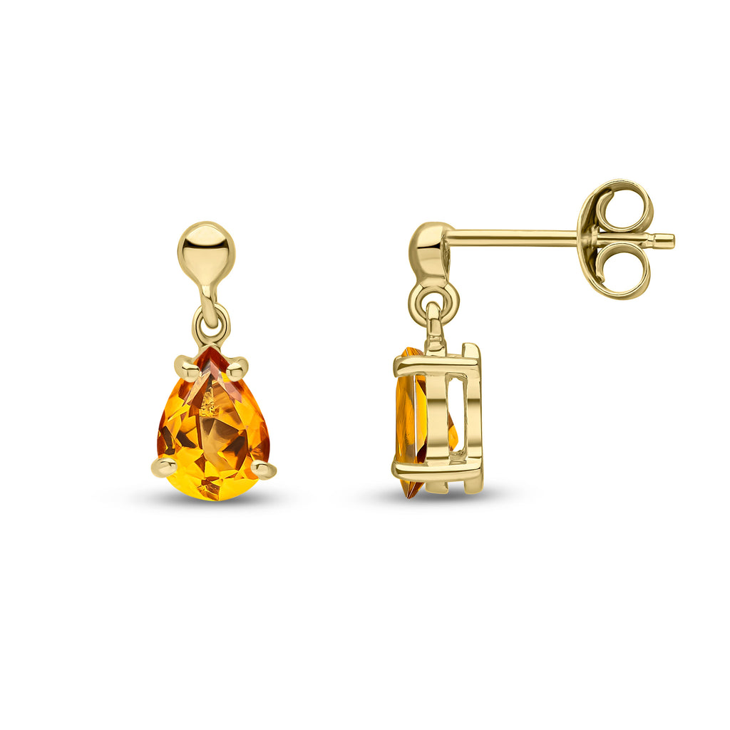 9CT Yellow Gold Pear Shaped Citrine Drop Earrings 7x5mm