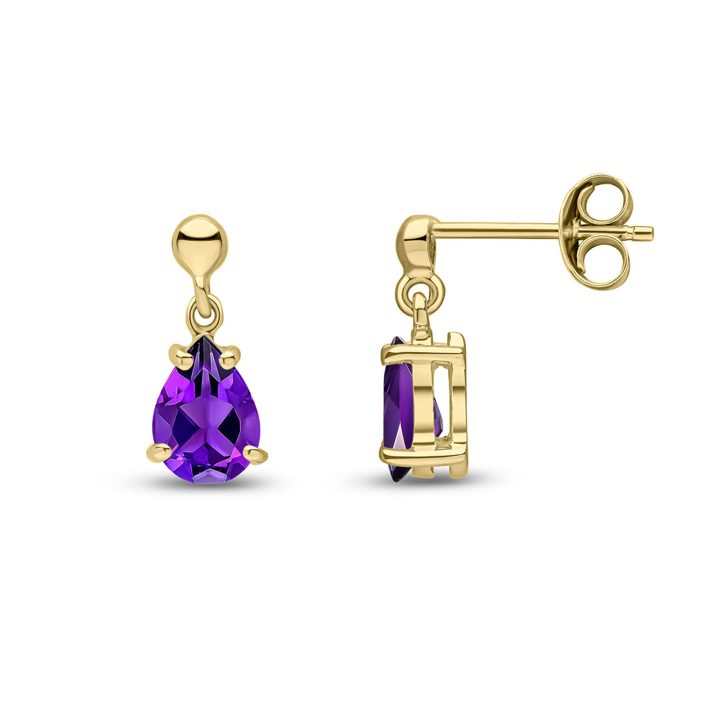 9CT Yellow Gold Pear Shaped Amethyst Drop Earrings 7x5mm