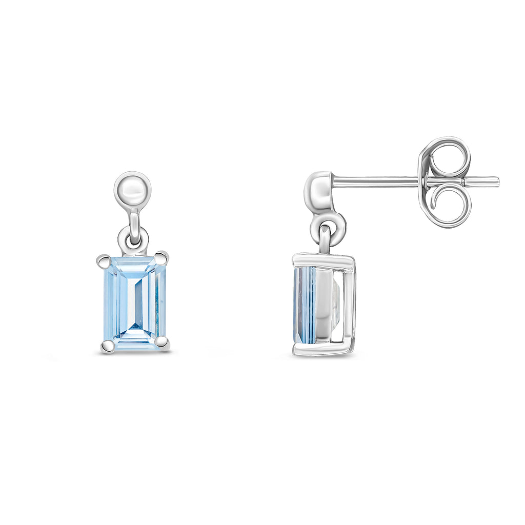 9CT White Gold Octagonal Aquamarine Claw Drop Earrings 6x4mm