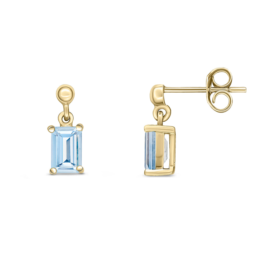 9CT Yellow Gold Octagonal Aquamarine Claw Drop Earrings 6x4mm