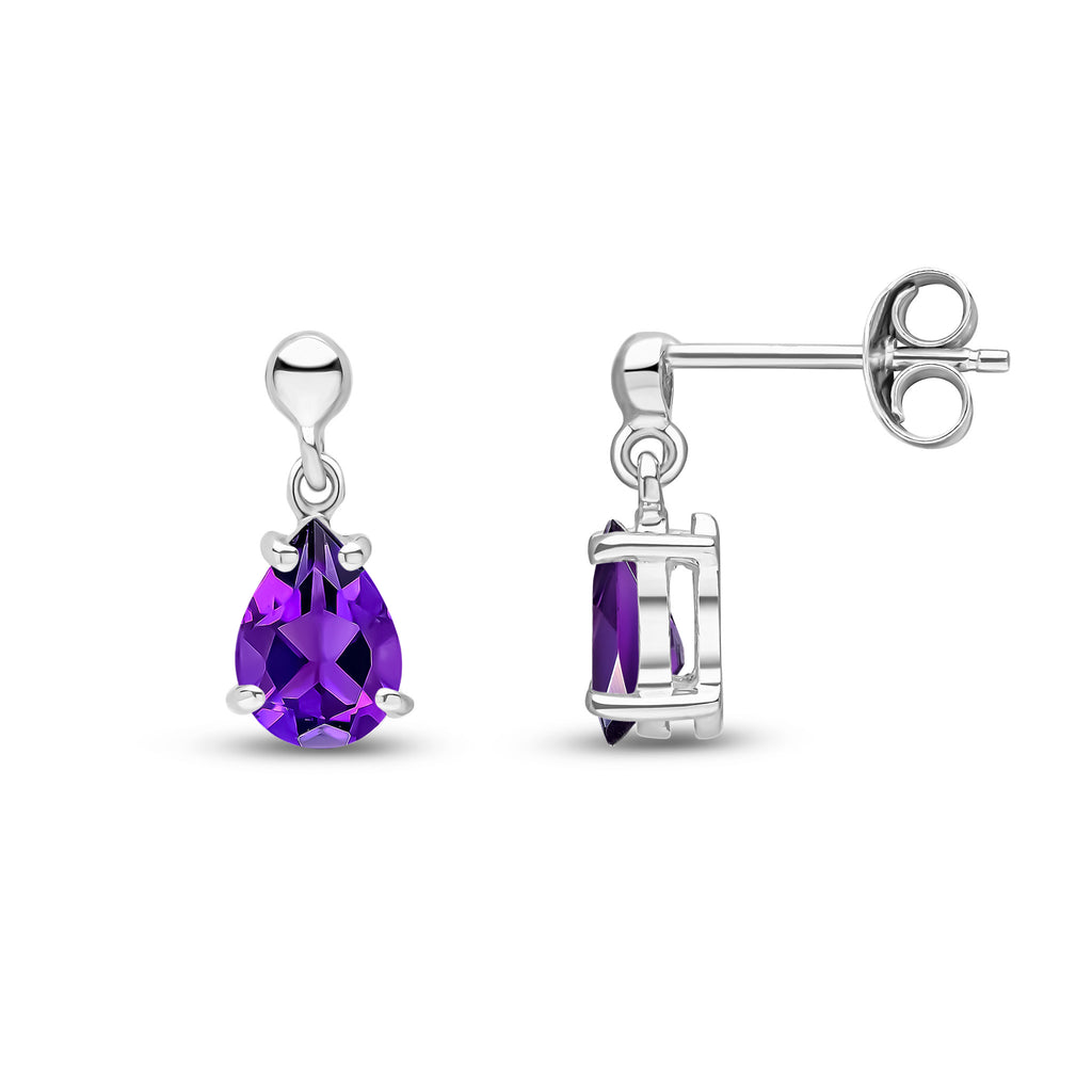 9CT White Gold Pear Shaped Amethyst Drop Earrings 7x5mm