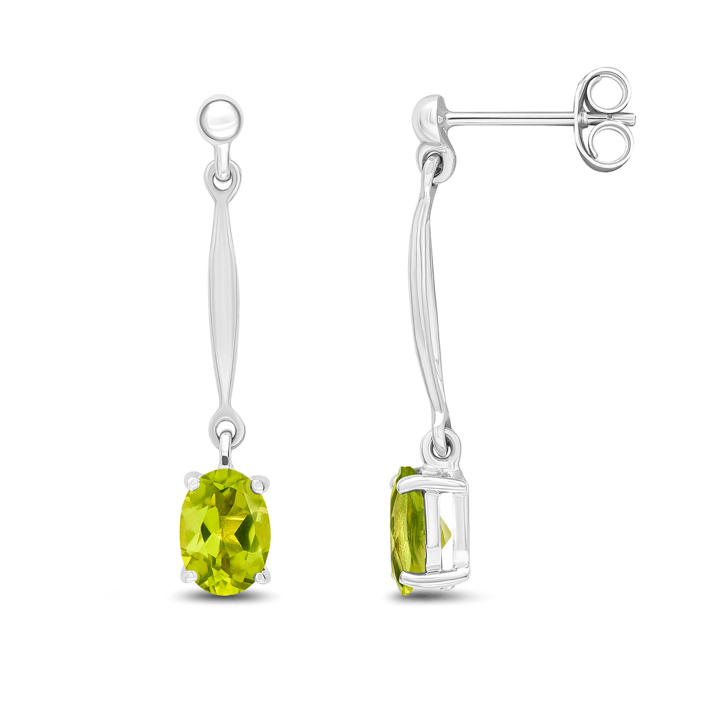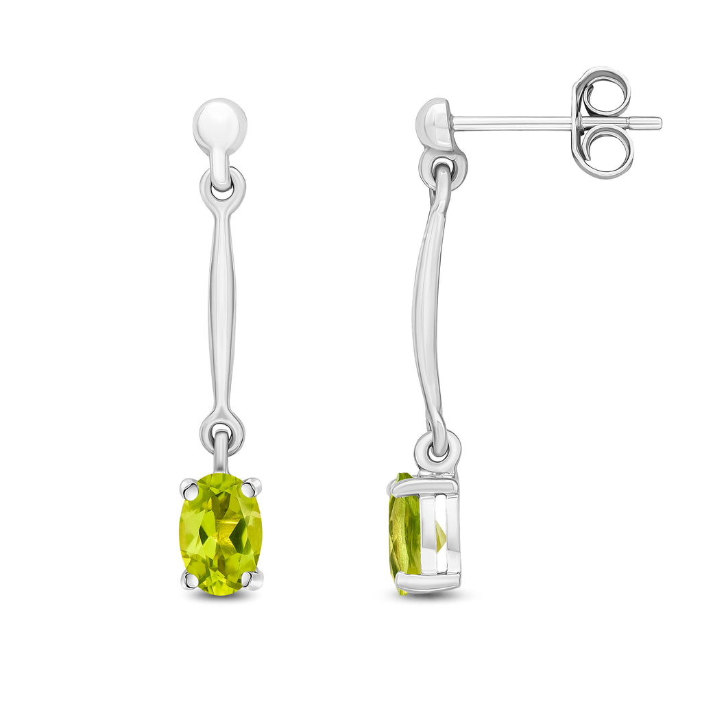 9CT White Gold Oval Peridot Bar Drop Earrings 6x4mm
