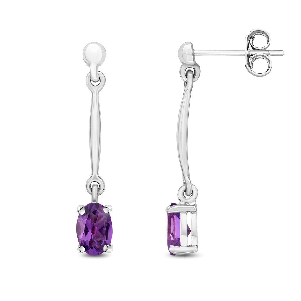 9CT White Gold Oval Amethyst Bar Drop Earrings 6x4mm