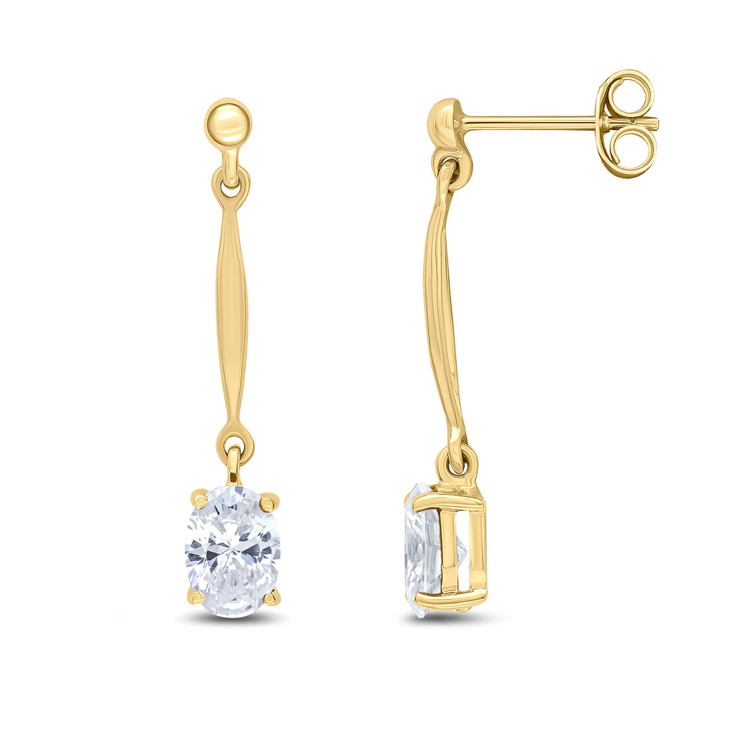 9CT Yellow Gold Oval Cubic Zirconia CZ Claw Bar Drop Earrings 7x5mm