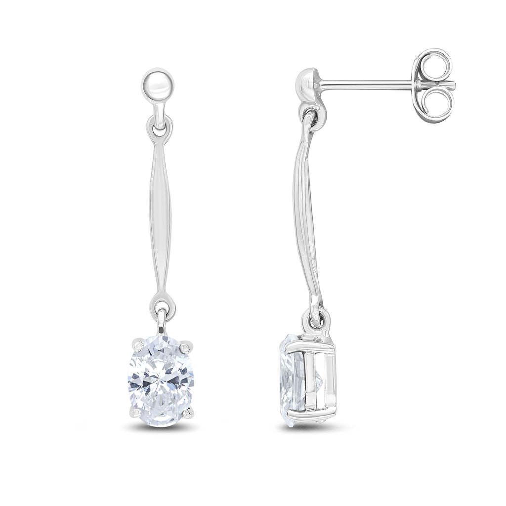 9CT White Gold Oval Cubic Zirconia CZ Claw Bar Drop Earrings 7x5mm