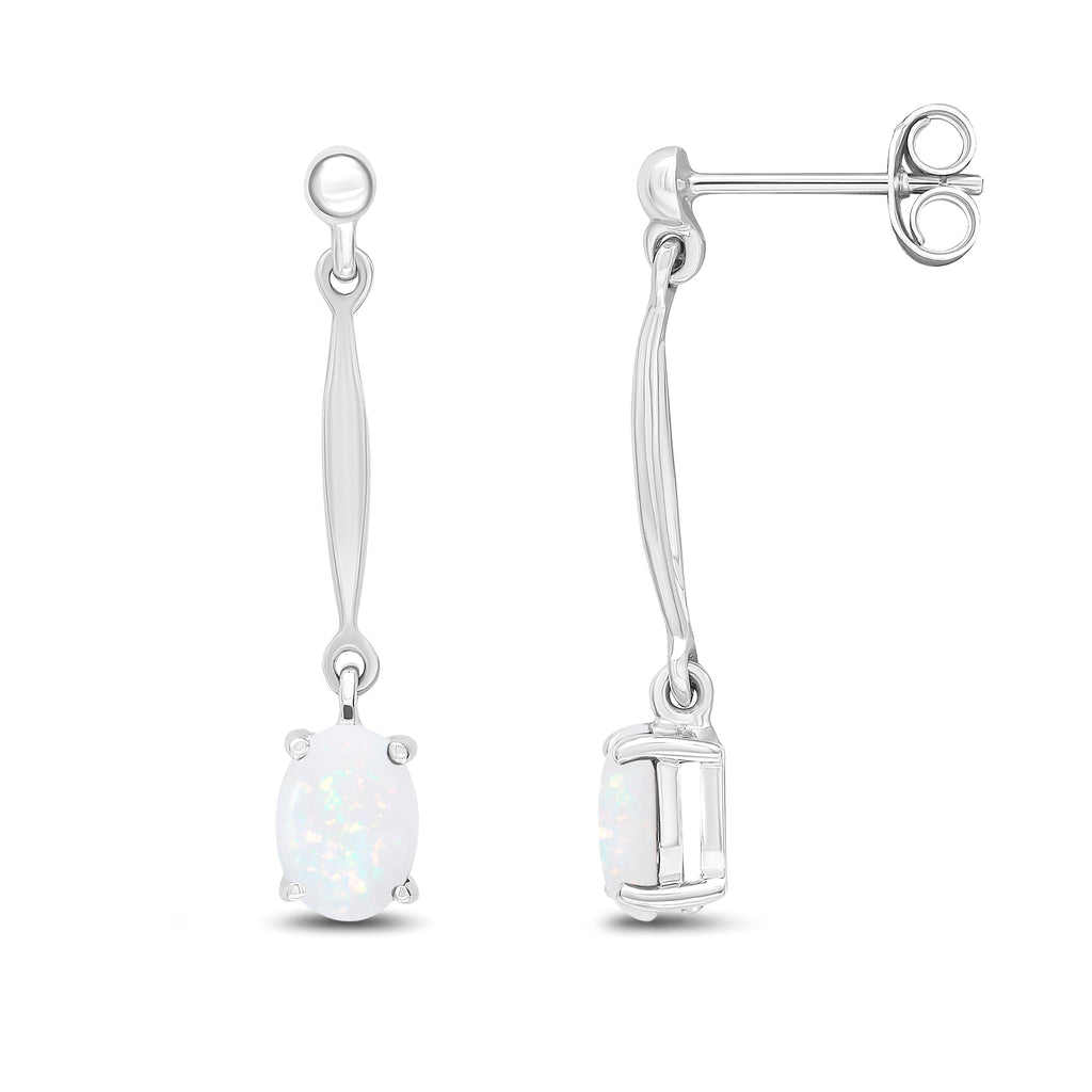 9CT White Gold Oval Opal Claw Bar Drop Earrings 7x5mm