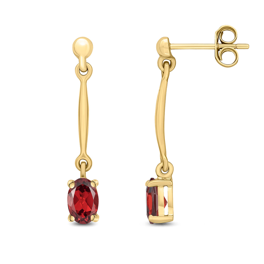 9CT Yellow Gold Oval Garnet Bar Drop Earrings 6x4mm