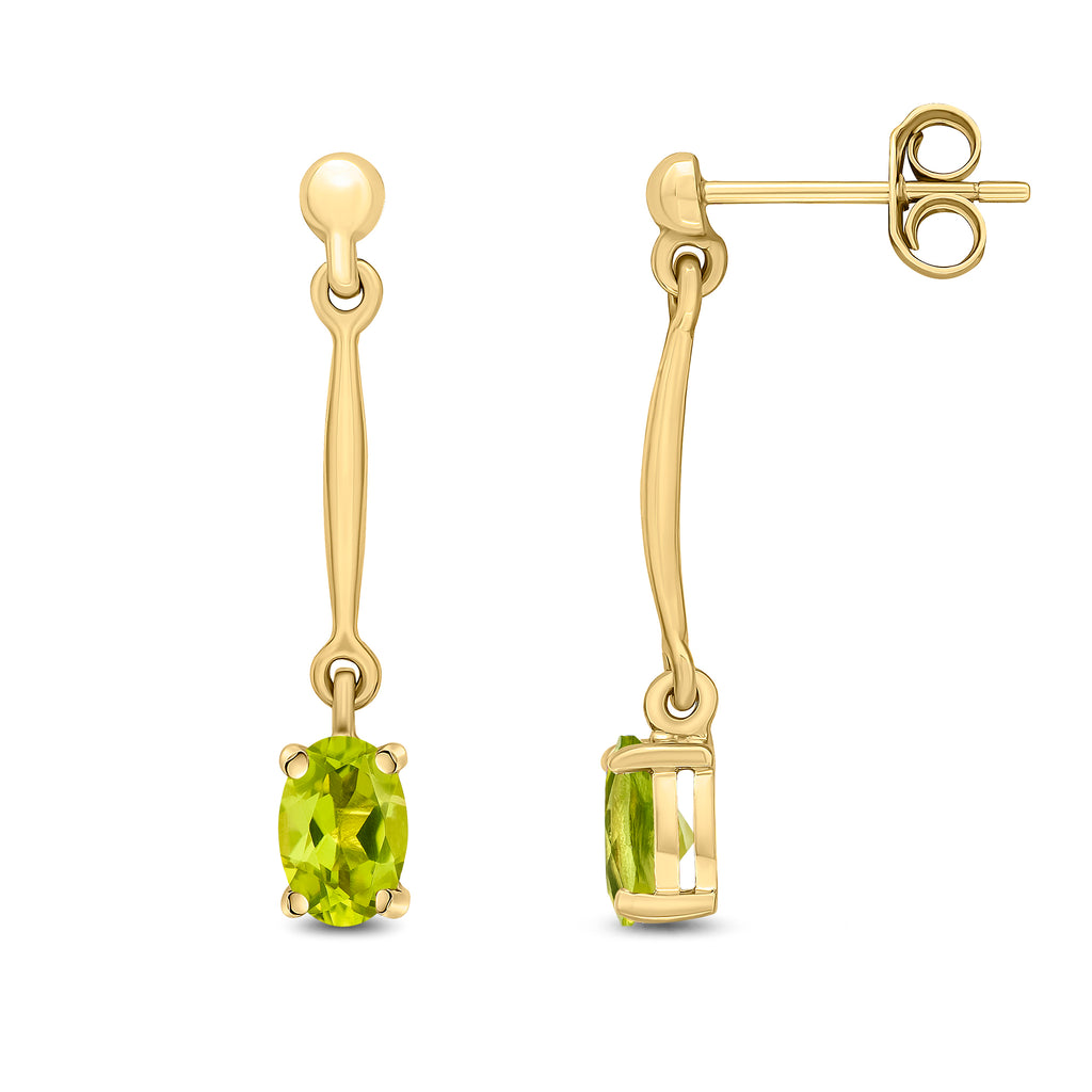 9CT Yellow Gold Oval Peridot Bar Drop Earrings 6x4mm